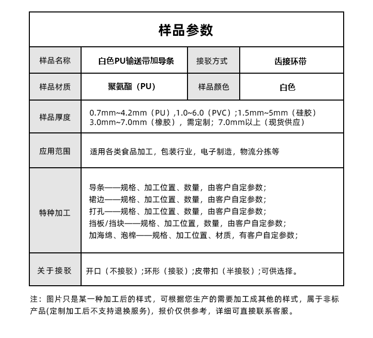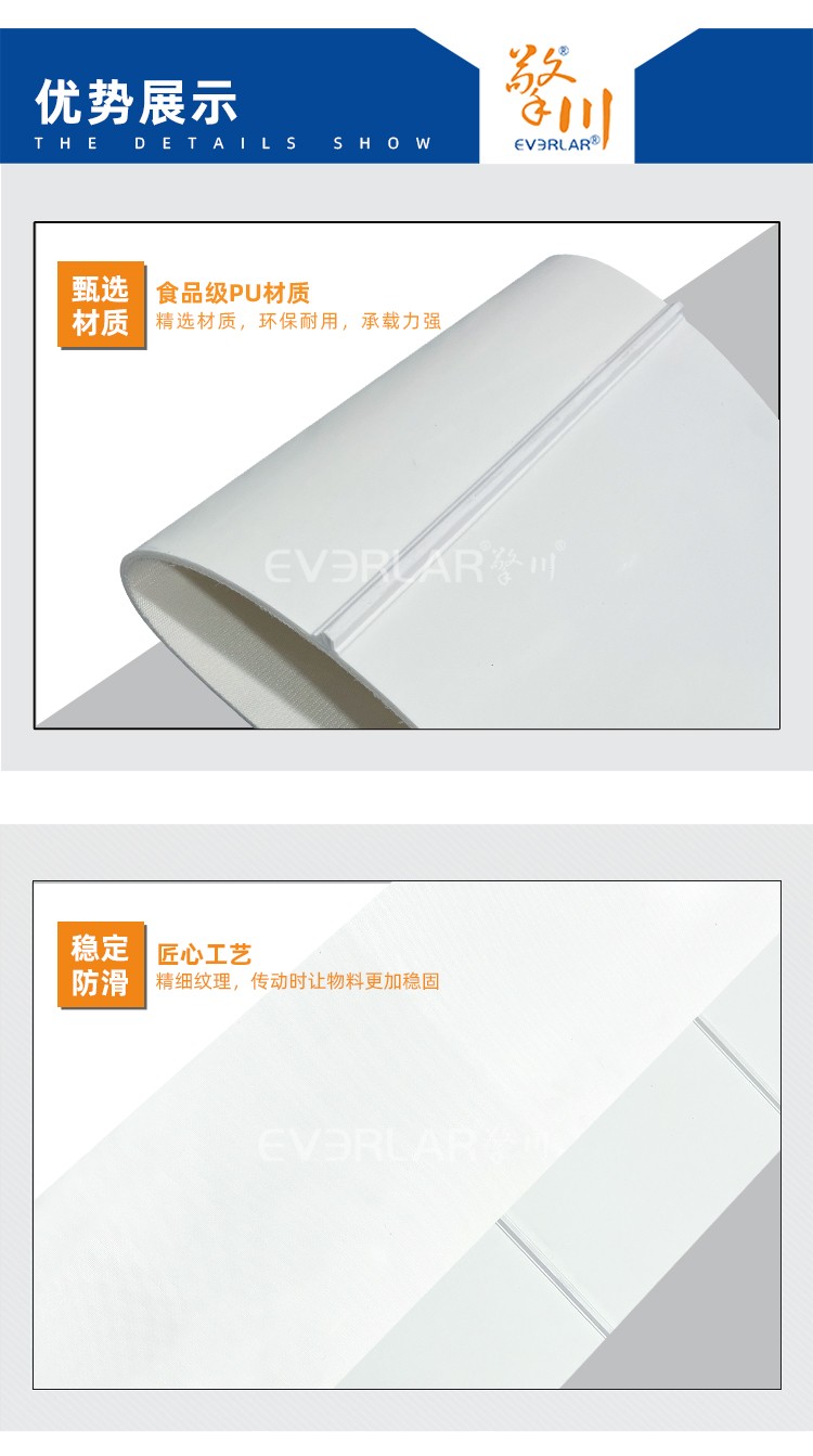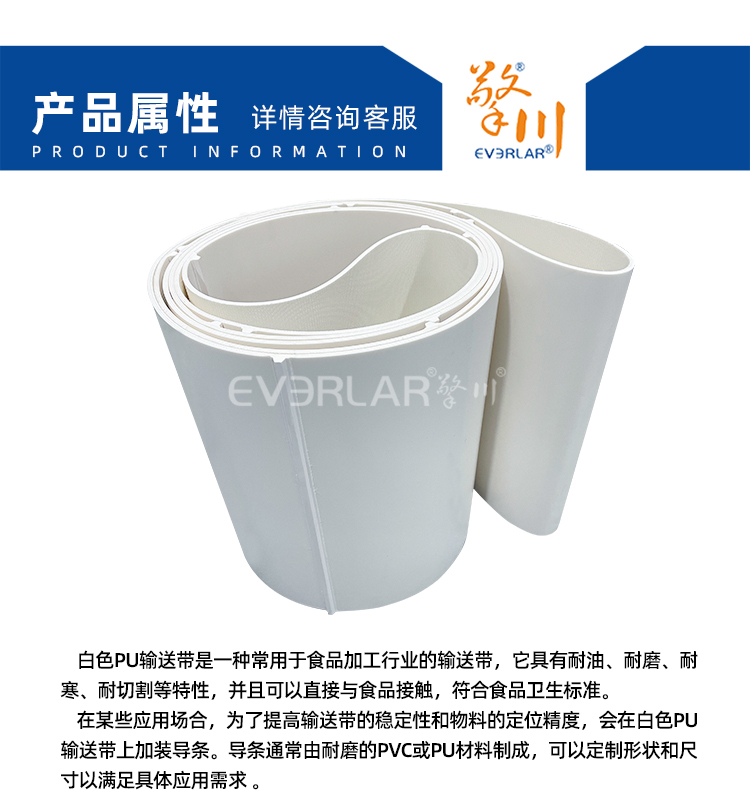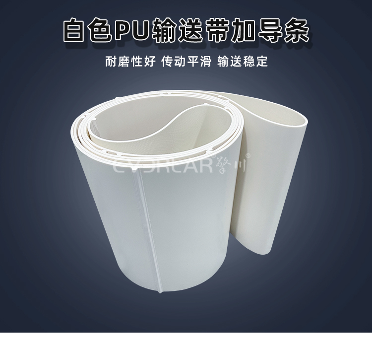 產(chǎn)品名稱:白色PU輸送帶加導(dǎo)條耐磨平穩(wěn)易清潔工業(yè)皮帶