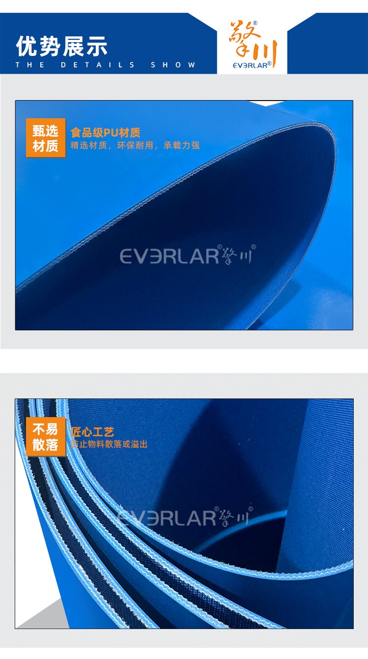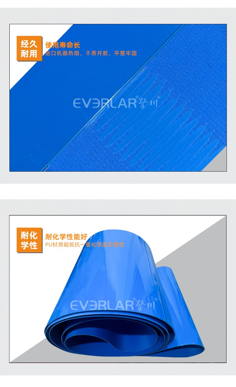 產(chǎn)品名稱:藍(lán)色PU輸送帶加導(dǎo)條耐磨耐油耐腐蝕工業(yè)皮帶定制
