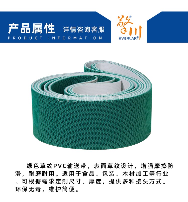 產(chǎn)品名稱:綠色草紋PVC輸送帶耐磨防滑耐腐蝕工業(yè)皮帶