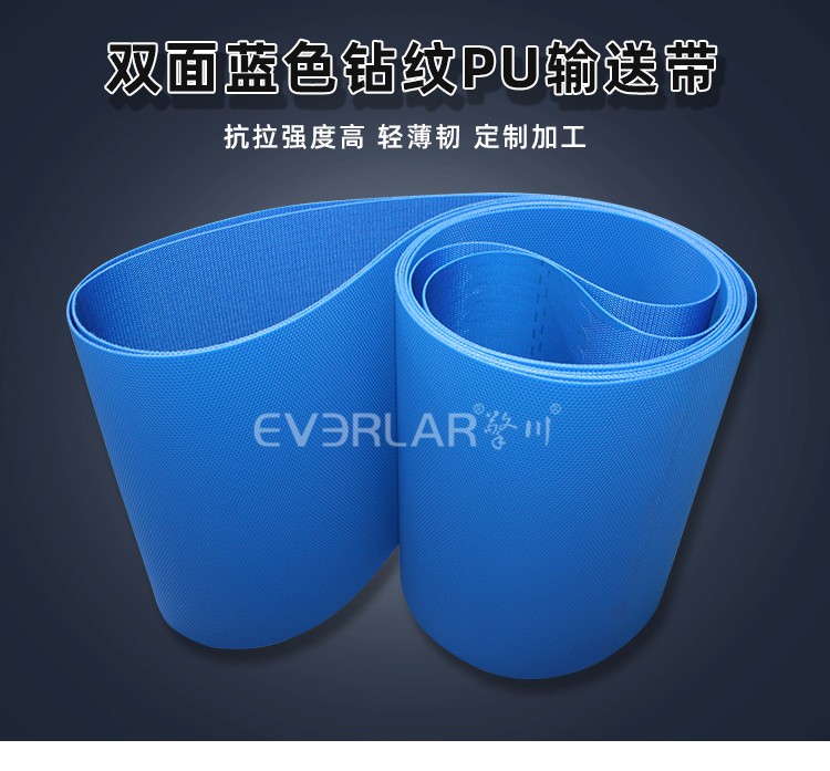 • 雙面藍色鉆紋PU輸送帶耐磨耐油耐腐蝕工業(yè)皮帶定制